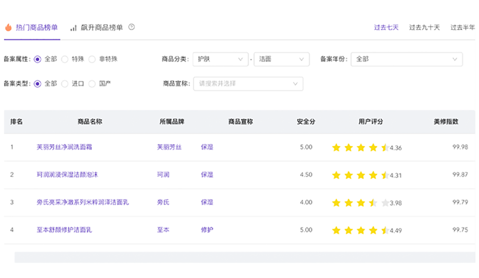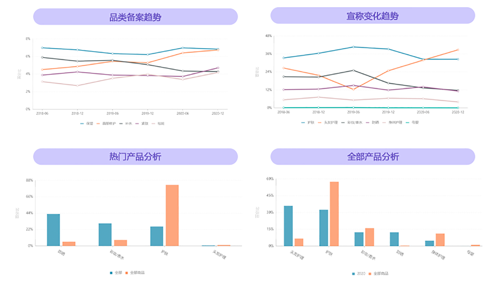 从备案商品、热门商品、品类、宣称等数据,检测市场动态,把握行业趋势
