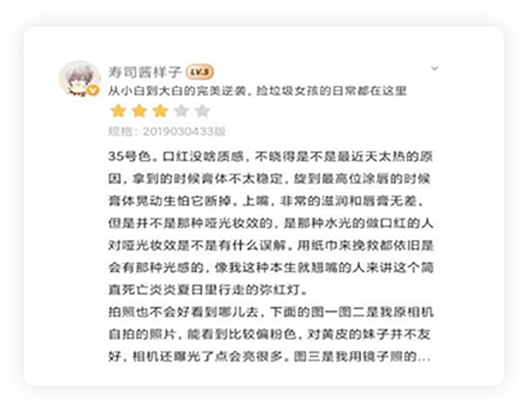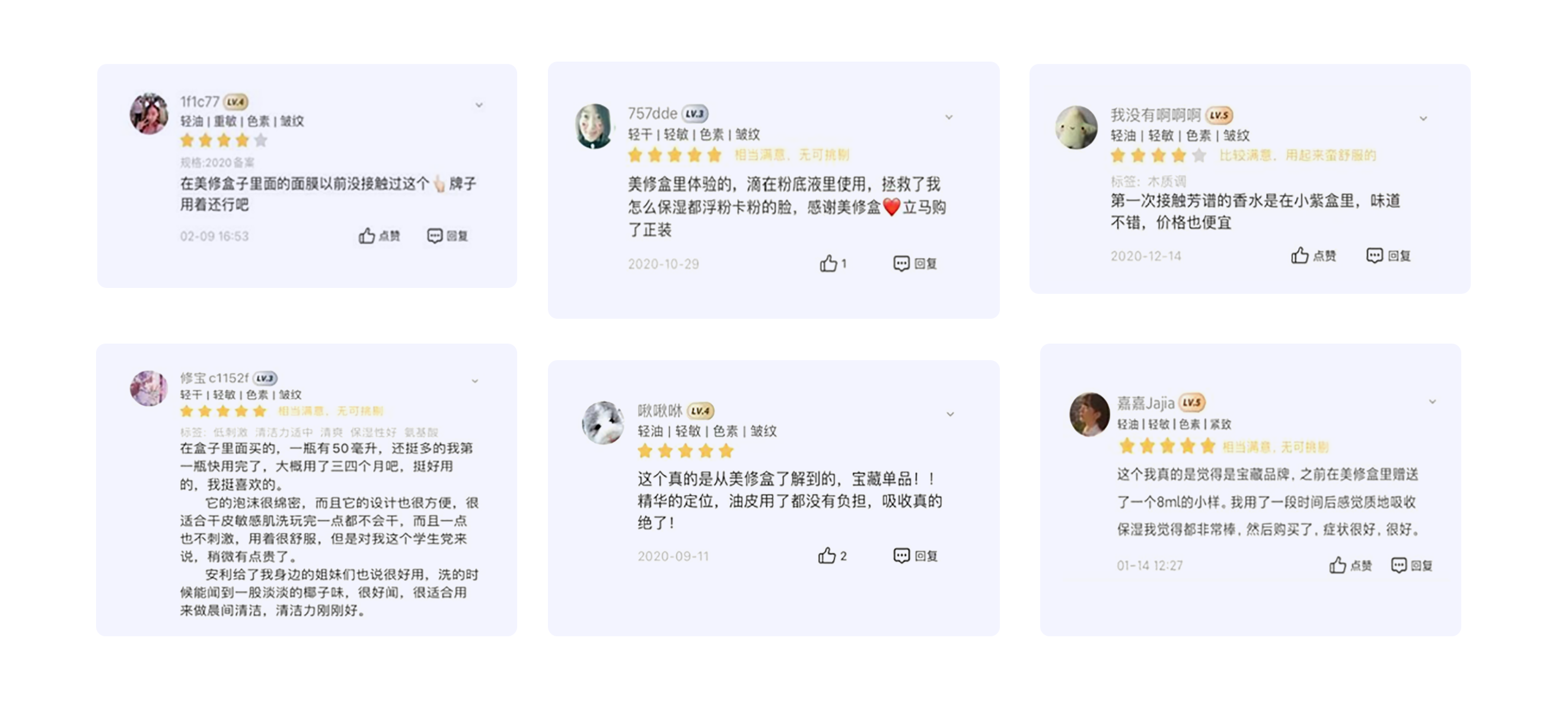 通过选品试用团、用户点评、问卷反馈等 信息,总结出产品的短板信息提供给品牌 方,为下一次产品升级提供方向