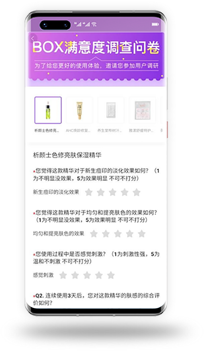 由品牌方根据自身需求制定问卷内容,了解用户真实的试用感受